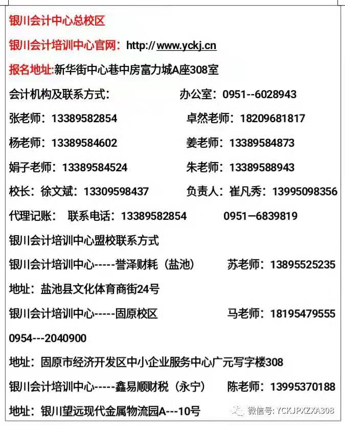 銀川會計(jì)培訓(xùn)中心(新華街中心巷中房富力城A座308)